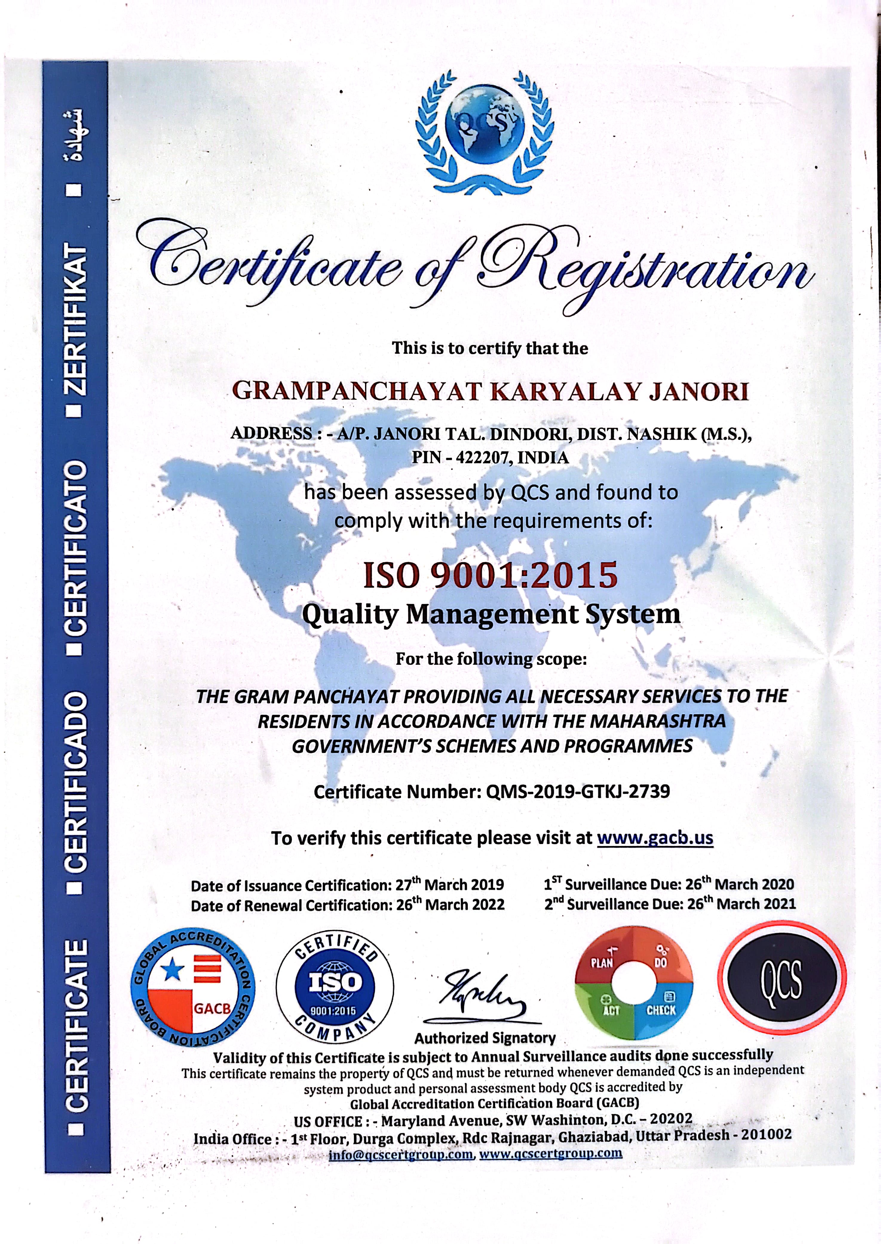 - ग्रामपंचायत जानोरी ISO प्रमाणित केलेली आहे