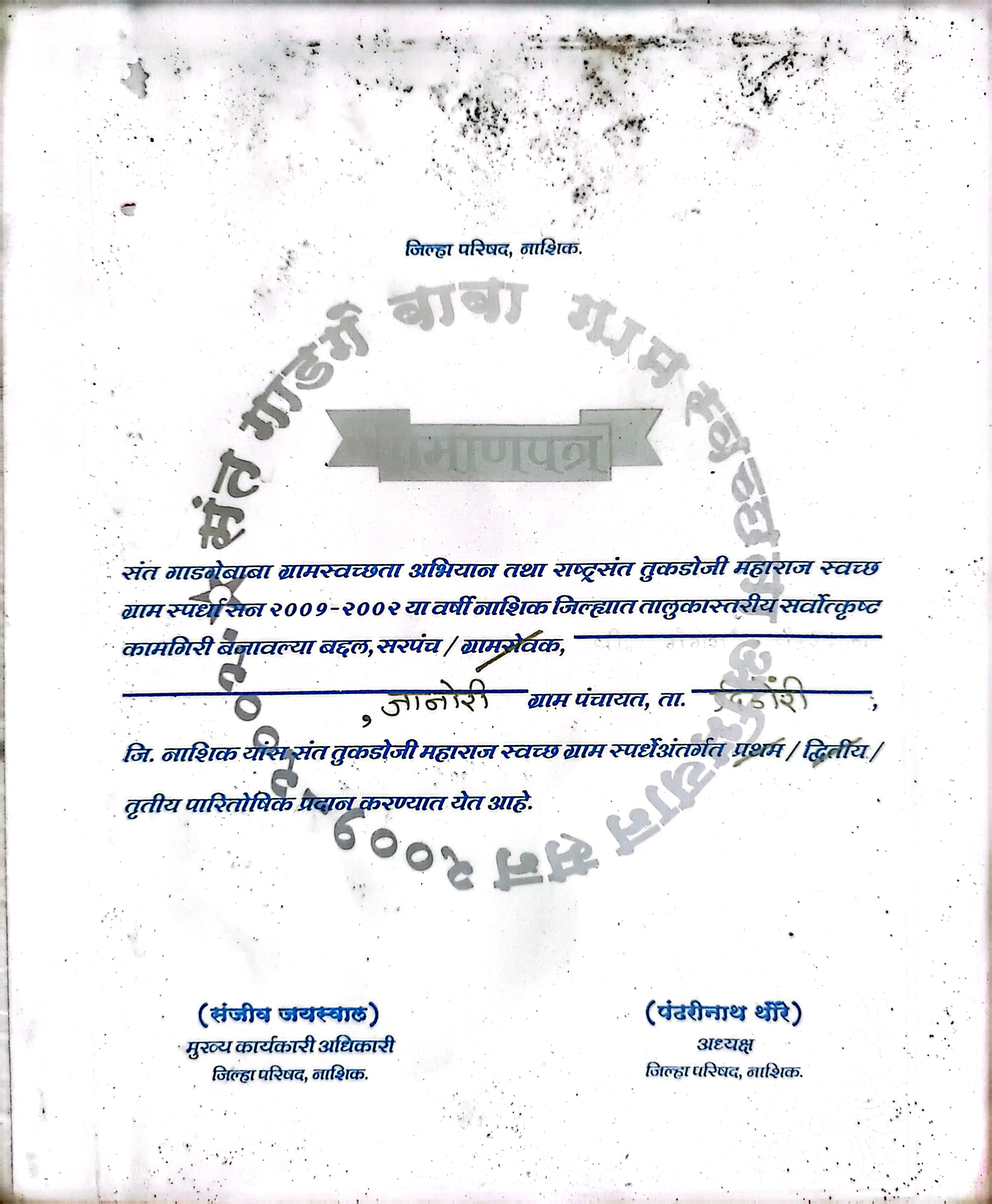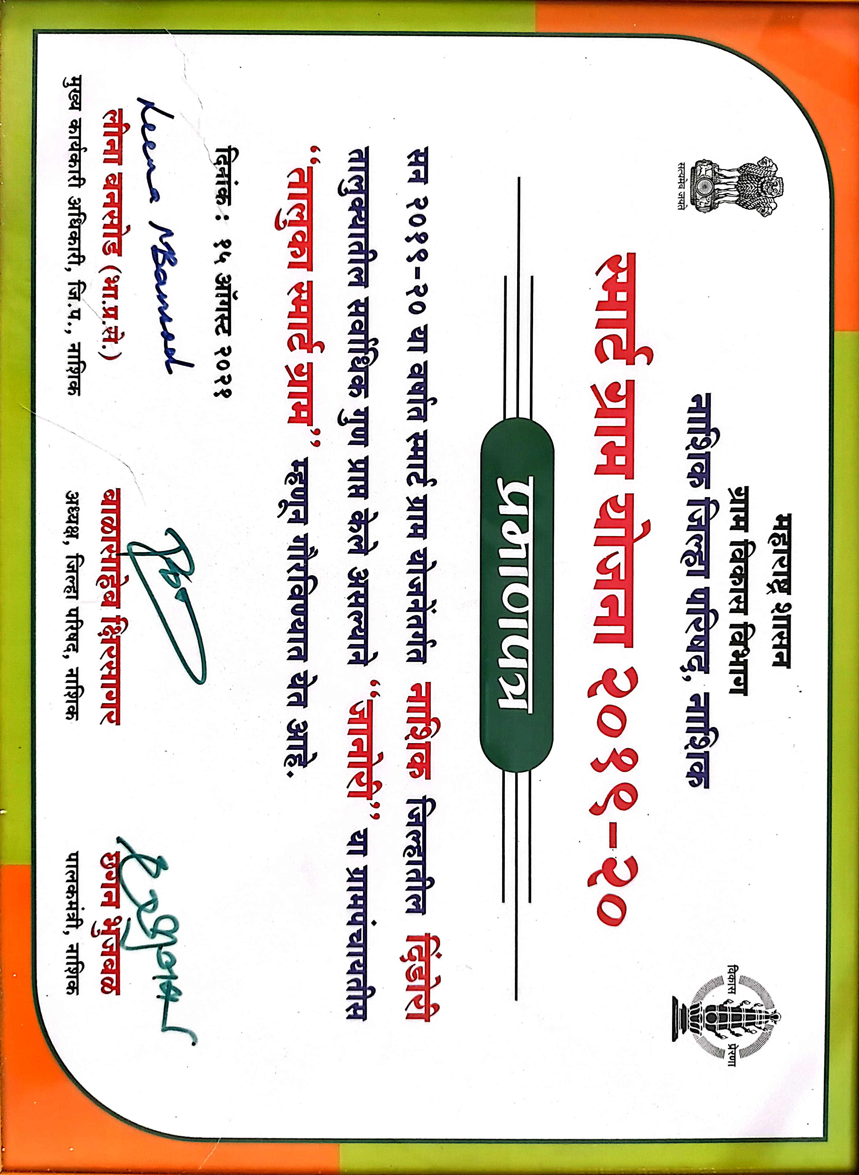 - ग्रामपंचायत जानोरी ला स्वच्छ भारत मिशन अर्तागत प्रमाणपत्र मिळालेले आहे